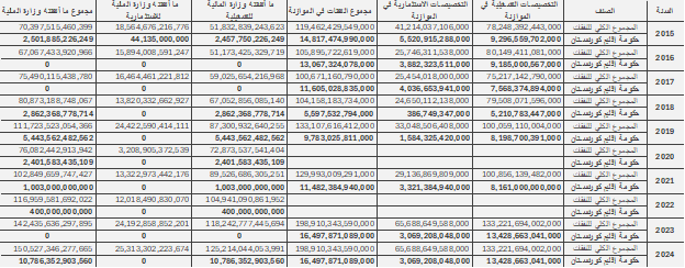 الجدول 1: حصة إقليم كوردستان من الموازنة العراقية والنفقات من وزارة المالية 2015-2024