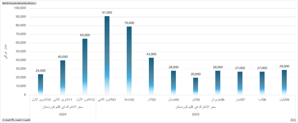 الرسم البياني (2): سعر الاشتراك لاستهلاك الكهرباء للمشتركين في مشروع رووناكي شهرياً من تشرين الأول 2024 حتى أيلول 2025