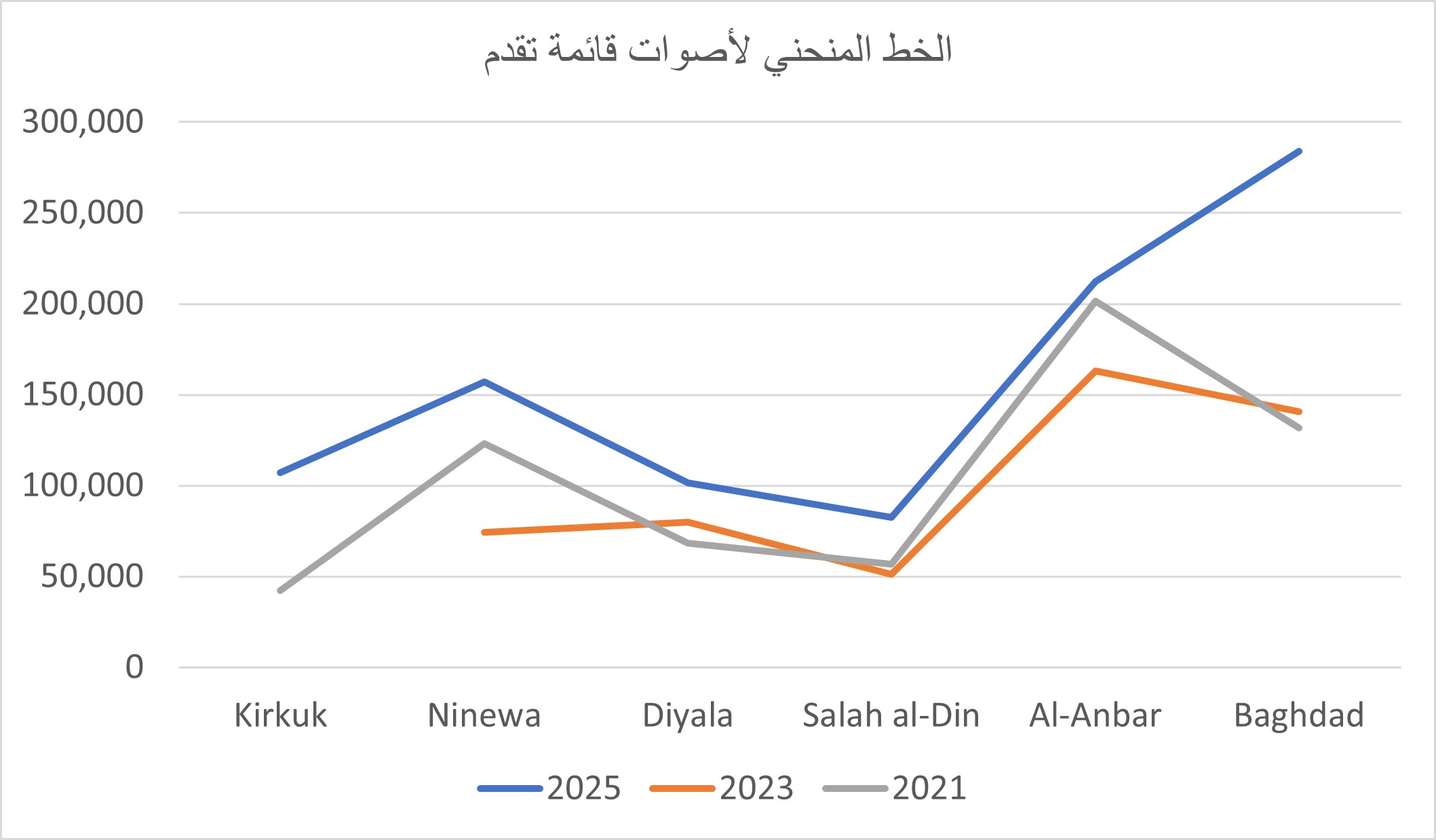 هناك نقطة أخرى، وهي أن نتيجة الانتخابات دفعت وضع الكورد في بعض المناطق المتنازع عليها وخاصة كركوك نحو مزيد من الغموض، ولأول مرة انخفض عدد مقاعدهم لأقل من نصف إجمالي عدد مقاعد المحافظة. رغم أن موضوعاً مثل قضية الأراضي لا يحل في الغالب بالانتخابات بل بمدى القوة، لكن التغير السياسي في تلك المناطق والذي يستند إلى شرعية انتخابية سيكون له تأثير أطول أمداً. لو كان لجميع الكورد في كركوك قائمة واحدة لكان بإمكانهم الحصول على 252,736 صوتاً ولارتفعت نسبة مقاعدهم. يأتي ذلك في وقت انخفضت أصواتهم أيضاً مقارنة بالانتخابات السابقة. ففي 2023 كانت أصوات جميع الأطراف الكوردستانية معاً 290,635 صوتاً، وهذا يعني أن القوائم الكوردستانية لم تنجح في إحضار جميع الناخبين الكورد إلى صناديق الاقتراع في 2025.
