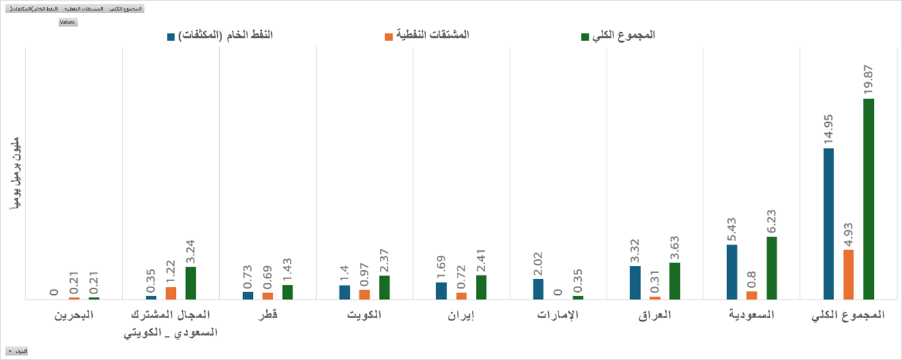 الرسم البياني 1: حجم صادرات النفط الخام والمشتقات النفطية عبر مضيق هرمز في 2025/ يومياً