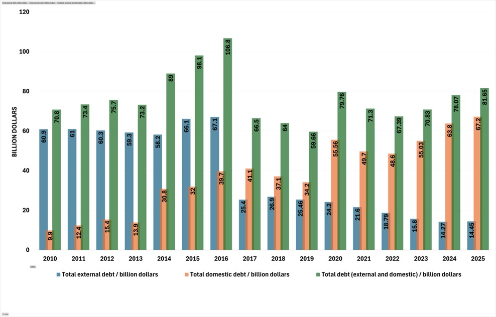 Graphic 02: Domestic debt, external debt, and total debt from 2010 to June 2025 / billion dollars