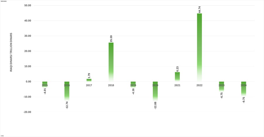 Graphic 01: Deficit and surplus between annual revenue and expenditure in Iraq from 2015 to 2024