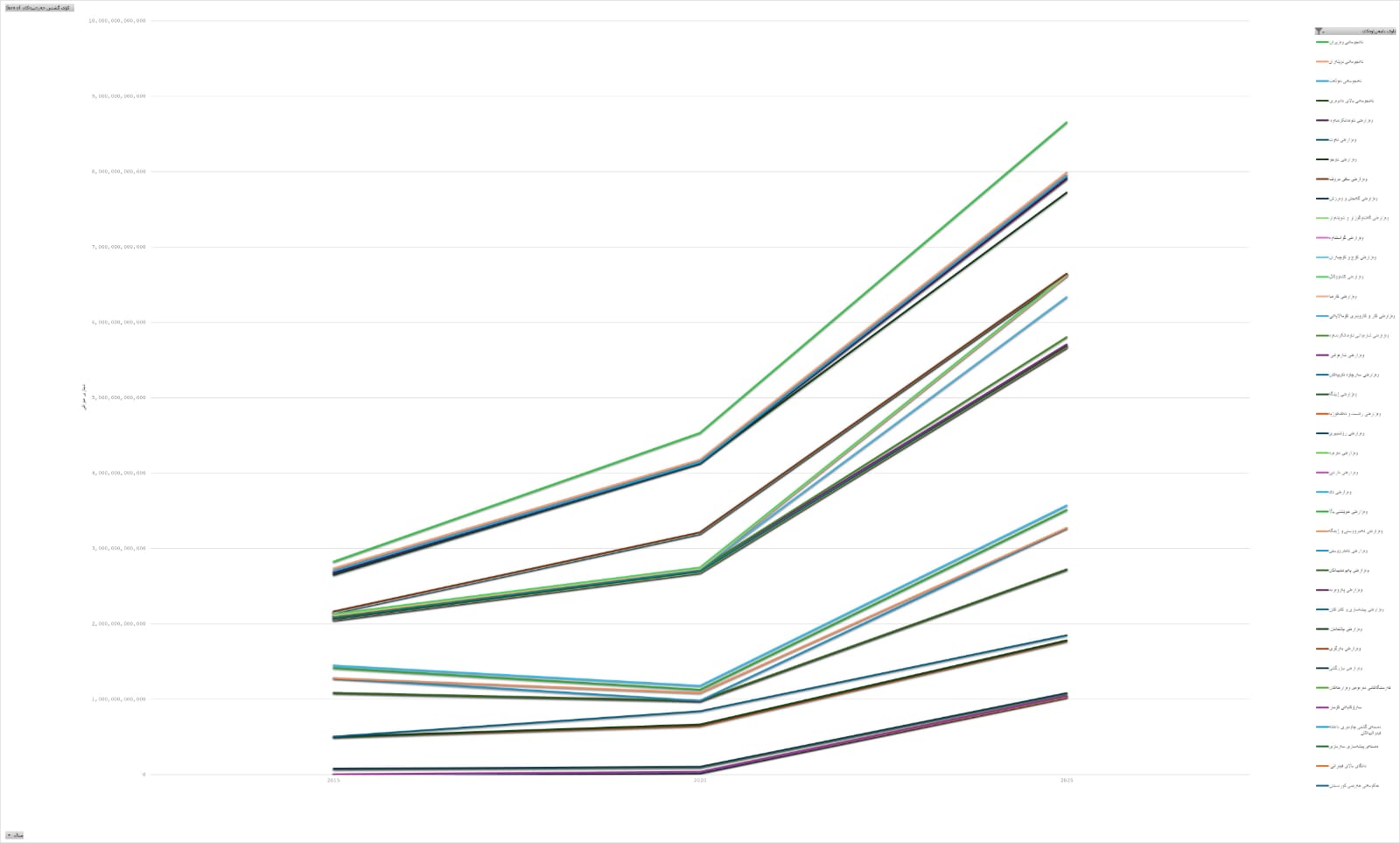 گرافیک 2: جیاوازی خەرجییەکانی دامەزراوەکان، سێ سەرۆکایەتی و وەزارەتەکان لە عێراق 2015-2020-2025 لەکانوونی دووەمی ساڵ دا.