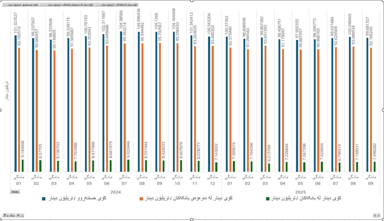 سەرچاوە، بانکی ناوەندی عێراق، ئاماری بوڵتەنی مانگانە، رۆژی دەسخستن 24ی تشرینی دووەمی 2025