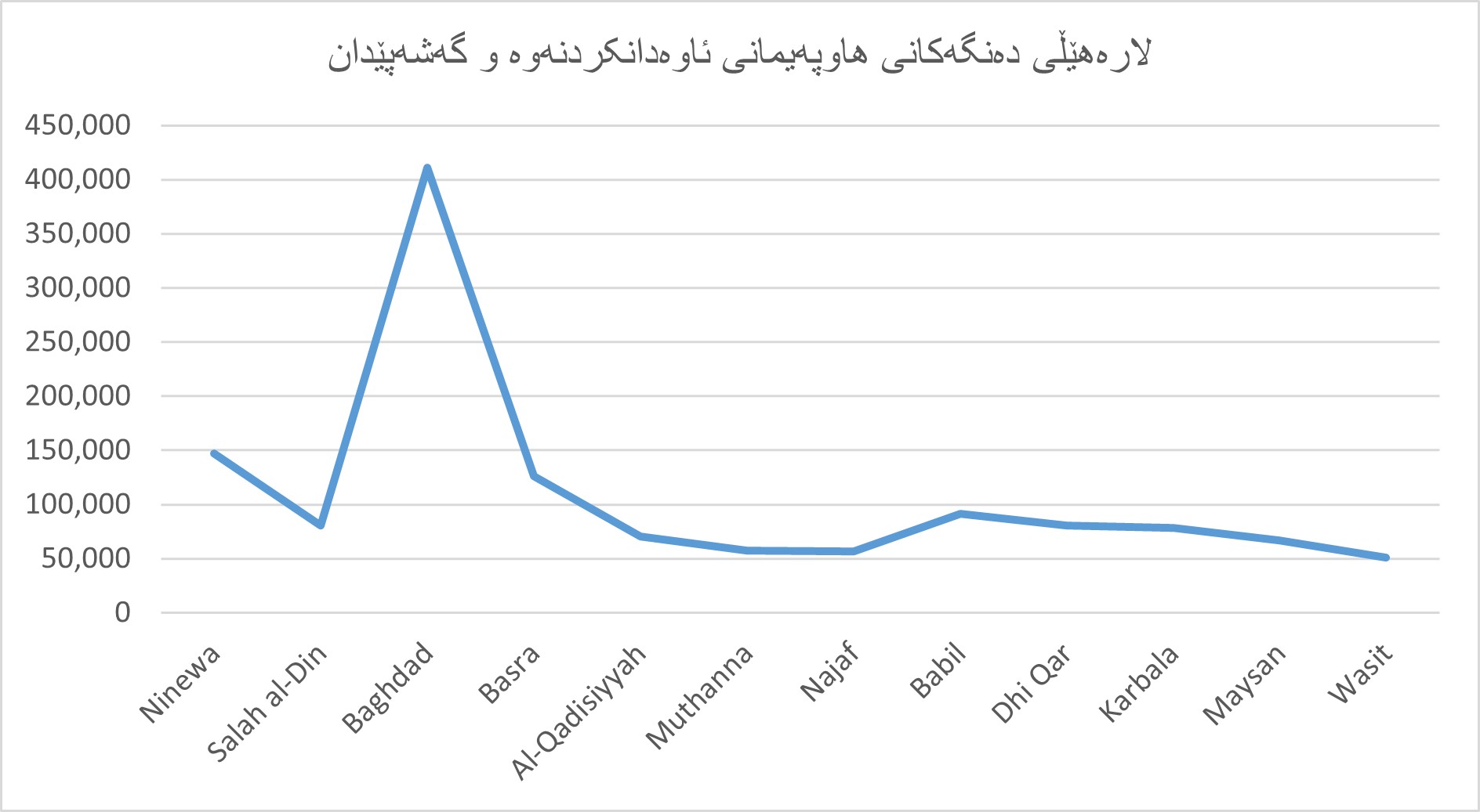 بە گوێرەی ساڵی ٢٠٢٣-٢٠٢٤، رێژەی بەشداریکردن لە پارێزگاکانی بەغدا، نەینەوا، دیالە، ئەنبار و سەلاحەدین لە ئەوانی دیکە زیاتر بووە. هەرچەند کەرکووک و پارێزگاکانی هەرێمی کوردستان لە نێو ئەو پارێزگایانەدان کە زۆرترین بەشدارییان تێدا کراوە، بەڵام بە بەراورد بە هەڵبژاردنەکانی رابردوو، رێژەی بەشداری کردن لەو شوێنانە دابەزیوە کە بەرزترین رێژەی دابەزینەکە لە سلێمانی بووە. بەگشتی دەتوانین بێژین کە لە پارێزگا سوننەنشینەکاندا هەستانەوەیەکی سەرنجڕاکێش بۆ بەشداری هەیە. لە ناوچە شیعەنشینەکانیشدا ئاستی بەشداری زیادی کردووە، بەڵام دیسان کەمترینی عێراقن و لە ئاستیکی زۆر گەورەدا نییە و پارێزگاکانی وەک نەجەف و میسان لە خوارەوەی لیستەکەدا ماونەتەوە.